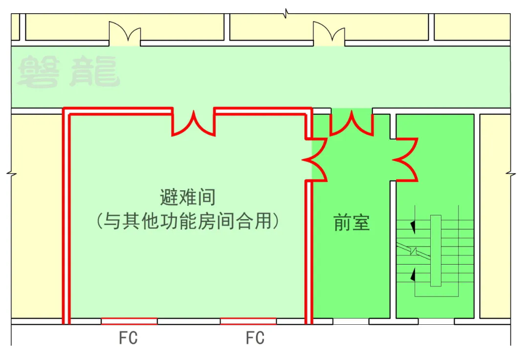 【图示19】避难间直通疏散楼梯间或前室,且不用于其他功能