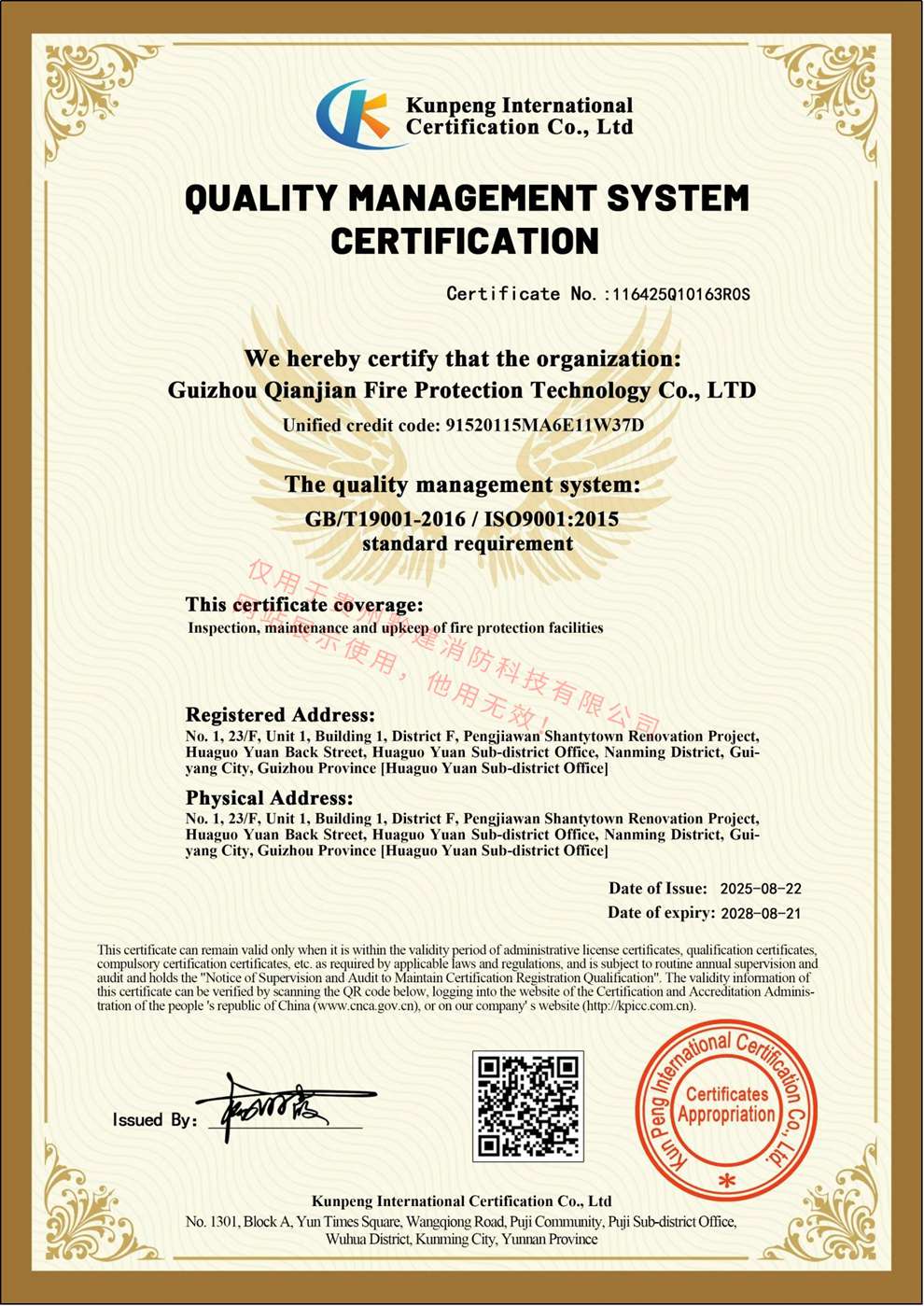 质量管理体系认证证书