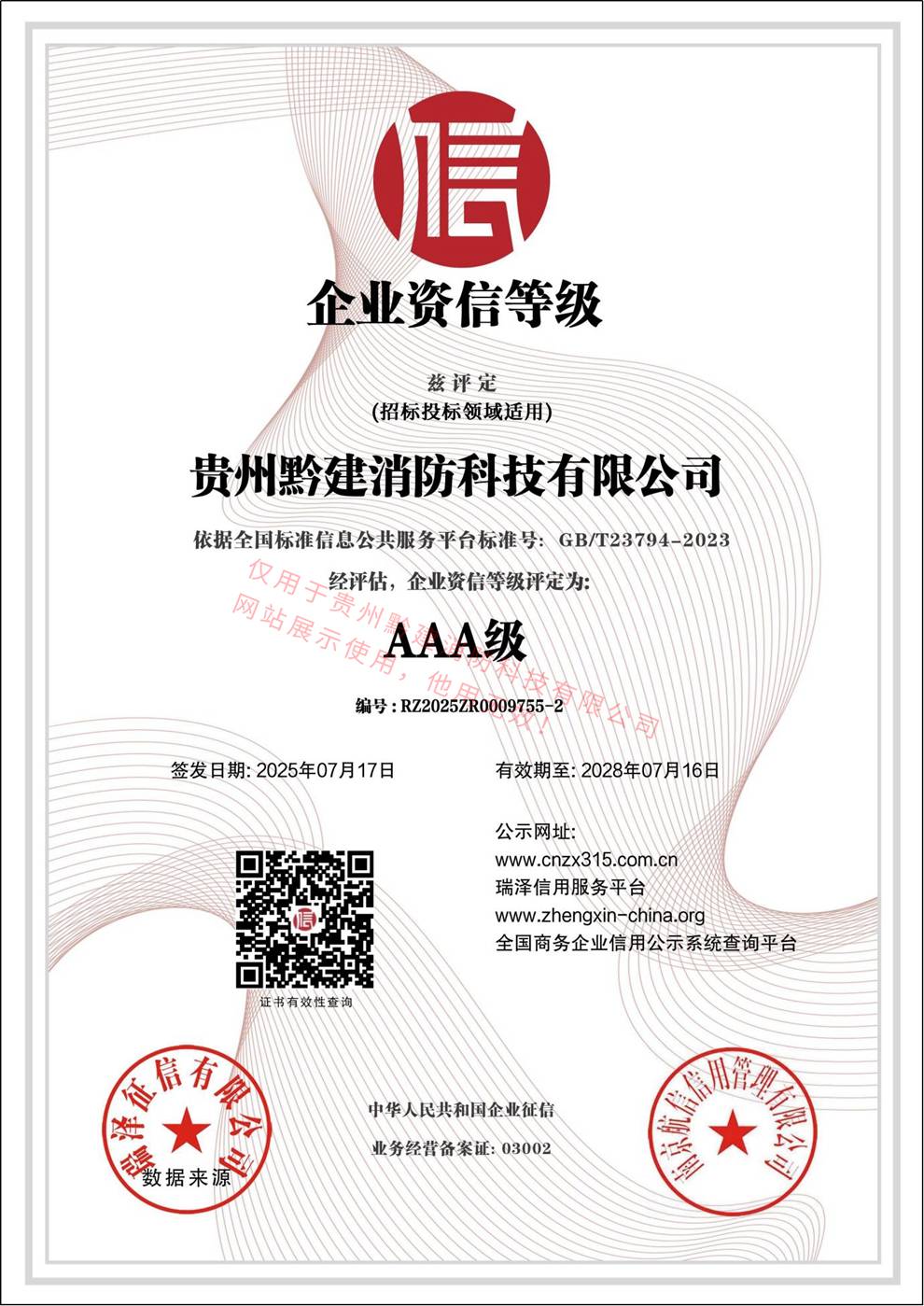 企业资信等级 AAA级